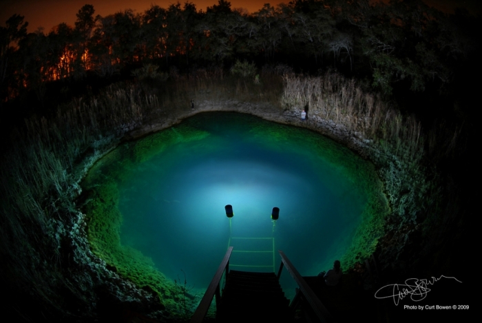 Подводная спелеология - один из самых опасных видов спорта. Но та красота, которую скрывает вода в карстовых пещерах стоит любых рисков. Так считает Курт Боуэн, известный исследователь подводных пещер. Чтобы донести до людей, хоть частичку этого великолепия он придумал необычный способ их съемки. Устанавливая под водой искусственные источники света он создает потрясающей красоты фотографии таинственных подводных пещер.