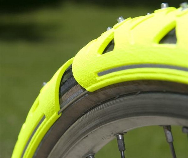 Велосипед исконе считается сезонным видом транспорта. Причиной тому является неудобство эксплуатации в зимний период. Но недавно этоу проблему попытались решить умельцы из Голландии, представив на суд публики зимнюю резину для велосипедных шин. А точнее специальные накладки Bicycle Tire Spikes.
