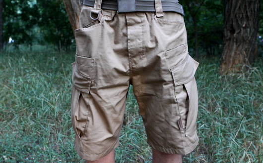 Шорты выполнены в цвете «койот», покрой невероятно функционален: 4 пары карманов для разных групп аксессуаров. На правой передней шлице расположено специальное D-образное кольцо YKK для навешивания и фиксации мелкого снаряжения (кошельков, складных ножей, мультиинструментов, компасов и GPS, фонариков и т.п.), что очень удобно и минимизирует вероятность утери при активном движении.